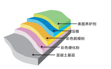 2、在已抛撒彩色硬化粉的混凝土表面抛洒彩色脱模粉;